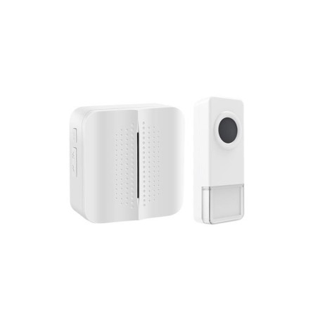 Bezdrátový zvonek s bateriovým tlačítkem (baterie A23 součástí balení) a dosahem tlačítka až 150 m. Zvonek nabízí 52 různých melodií a 4 úrovně hlasitosti (až 110 dB). Přijímač je určen k montáži do zásuvky a přenos probíhá na kmitočtu 433 MHz.