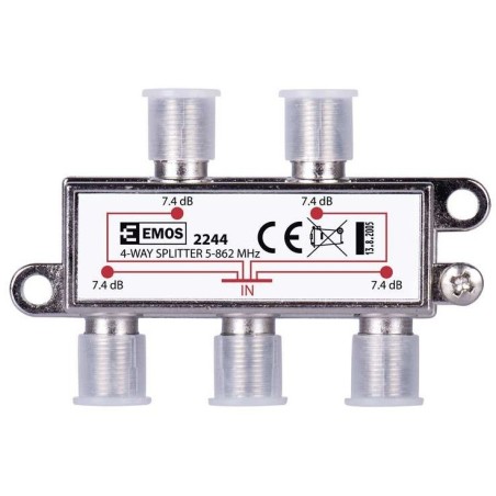 Čtyřnásobný feritový rozbočovač EU 2244. Rozbočovač se využije v případech kdy např. chcete zapojit dva televizory do jedné účastnické zásuvky.