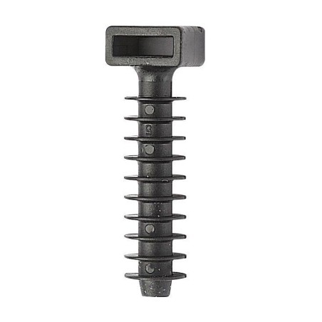 Kabelová plastová příchytka pro stahovací pásky ve tvaru hmoždinky, do otvoru 8mm a maximální šíře pásku 9,7mm. Bimed páska se provlékne obdélníkovým otvorem a po zatánhutí vytvoří nosné oko.