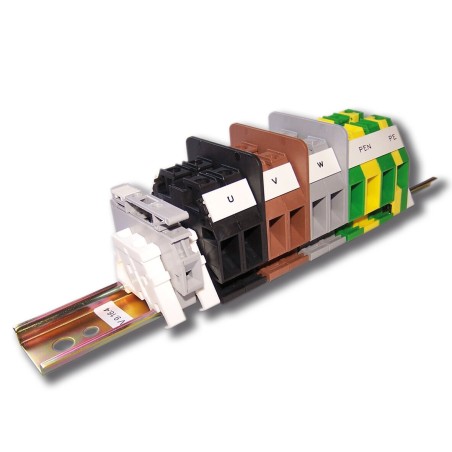 Odbočovací čtyřvodičová svorkovnice s jedním držákem RSP 4. Složení svorkovnice: 9 x RSA 16 A 1 x RSA PE 16 A Rozměry: A [mm] 55 B [mm] 61 C [mm] 161 C1 [mm] 50 L [mm] 250 • Materiál izolantu polyamid PA 6, hořlavost V0 dle UL 94, bez halogenů • Nadstandardní povrchová úprava spojovacích i elektrovodných částí • Možnost připojení hliníkových i měděných vodičů • Vodivě spojené svorky PE s lištou DIN • Krytí IP 20 bez nutnosti používání příslušenství či krytů (*) • Oddělení fázových svorek středovými přepážkami • Svorky v sestavách svorkovnic jsou označeny popisem • Certifikace státní zkušebny a soulad s normami EU